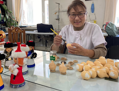 Woodcarver Ganbold and his family work together to carve and varnish beautiful figures.